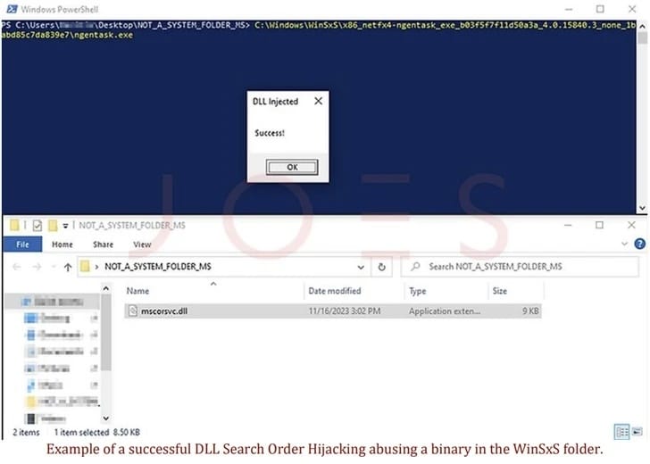 Technical Know-How: The attack focuses on vulnerable binaries in the WinSxS folder, combining them with malicious DLLs placed in actor-controlled directories. This method is subtle yet effective, triggering the execution of the DLL's contents without copying the executable.